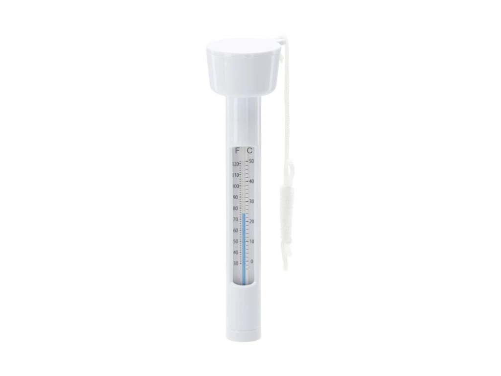Úszó hőmérő a kerti medencéhez lehetővé teszi a víz hőmérsékletének megállapítását a tartályban. Szabadon úszva a felszínen mutatja a mért eredményeket, Celsius-fokban és Fahrenheit-fokban egyaránt. Ez egy praktikus kiegészítő, amely megkönnyíti a medencéje használatát.• Tartós ABS műanyagból készült, zsinórral rendelkezik, amellyel az aljára rögzíthető.