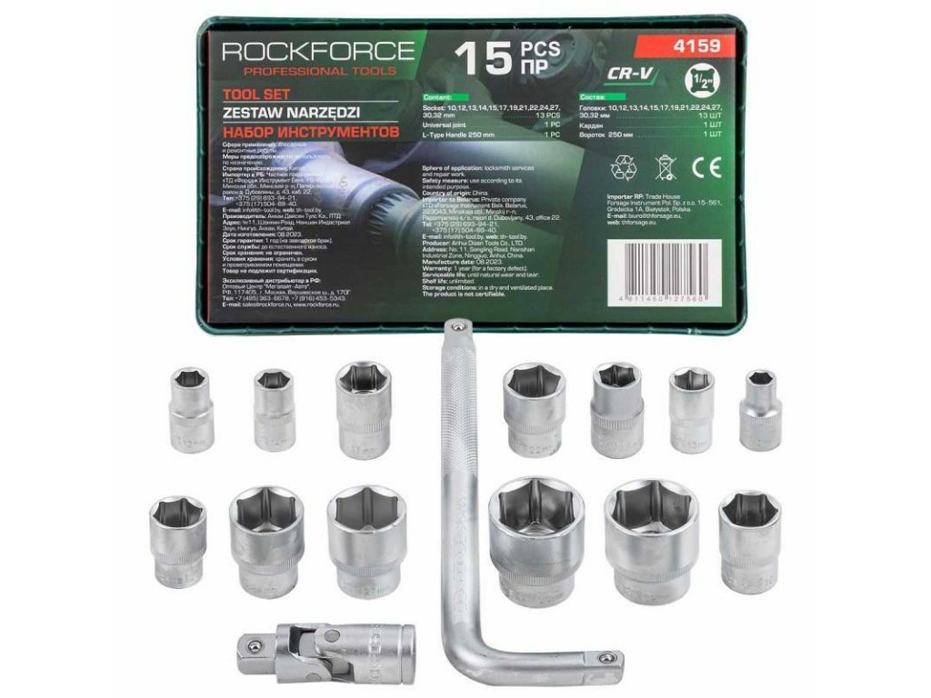 A készlet 15 darab 1/2"-es méretű kulcsból áll: