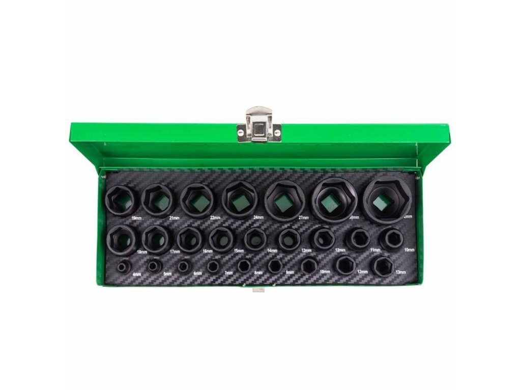 Impactszerszerítő készlet 1/2" 1/4" 4-32mm 6-szögletű 25db fémtáskában