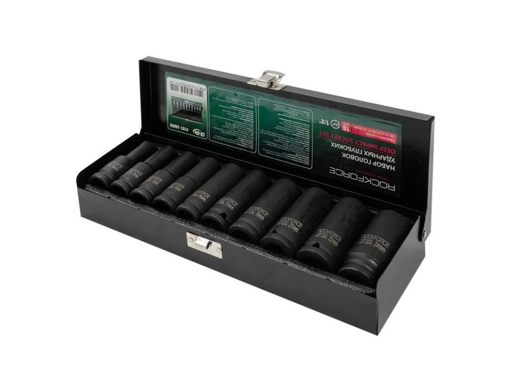 A készlet 10 db dugókulcsot tartalmaz 1/2 "-os méretekben: