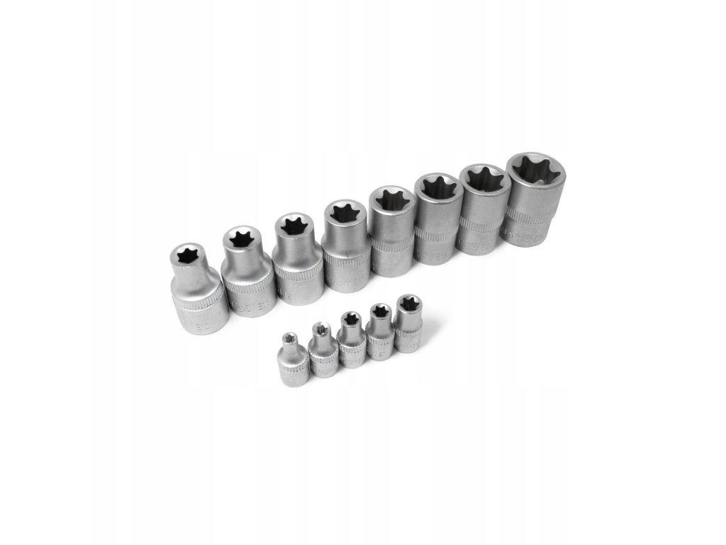 - TORX dugókulcsok 1/2" - 8 db: E10; E11; E12; E14; E16; E18; E20; E24