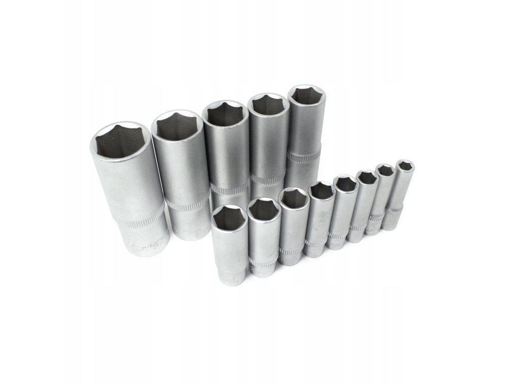 - Rövid dugókulcsok 1/2" - 17 db: 10, 11, 12, 13, 14, 15, 16, 17, 18, 19, 20, 21, 22, 24, 27, 30, 32 mm