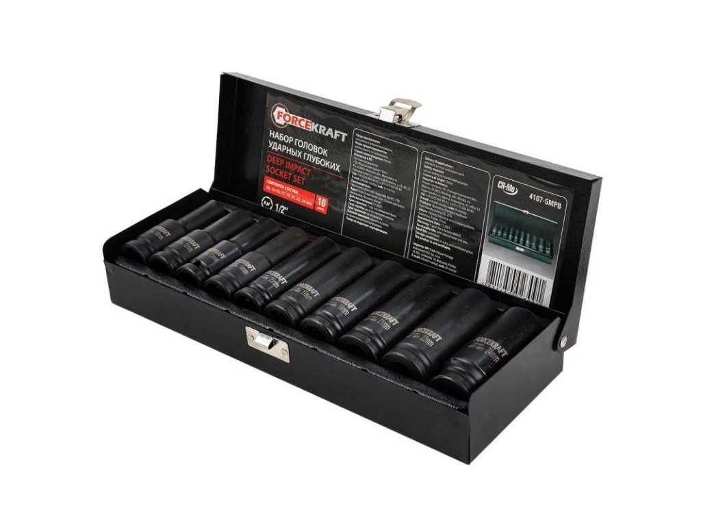 A készlet 10 db 1/2"-es méretű ütőfejből áll:
