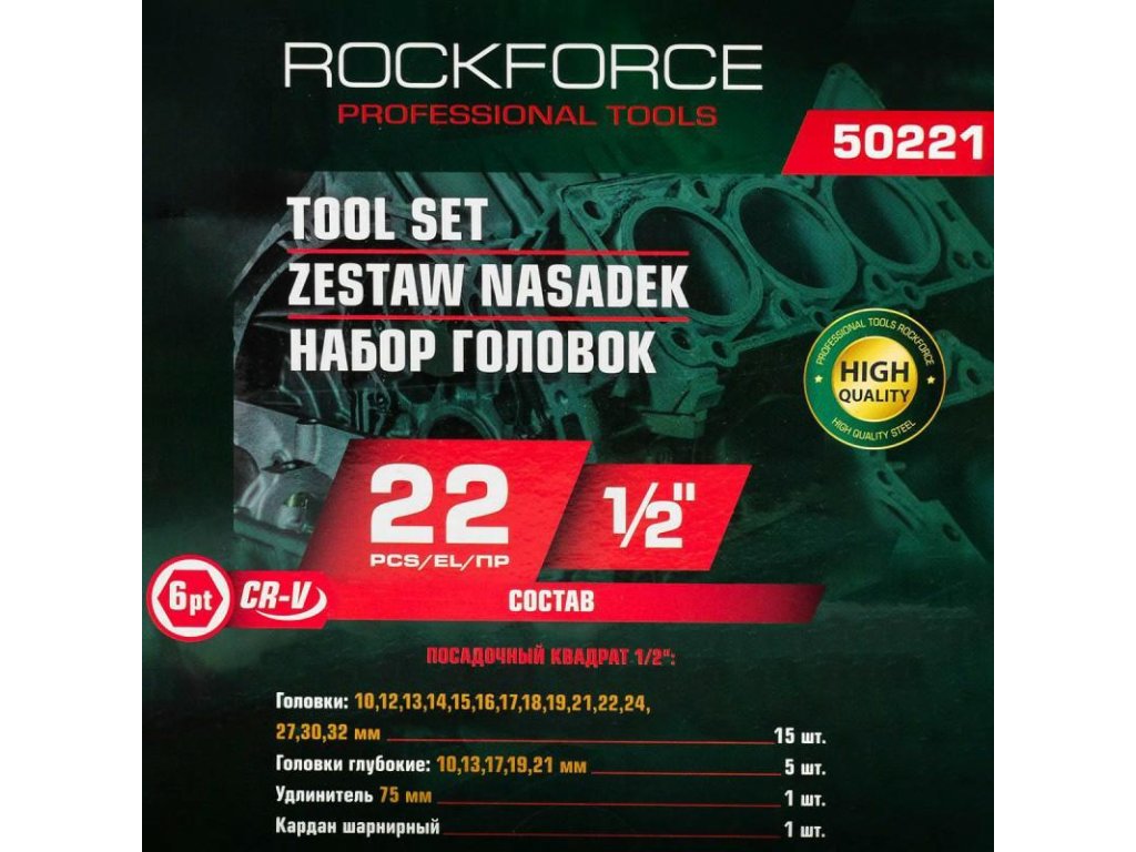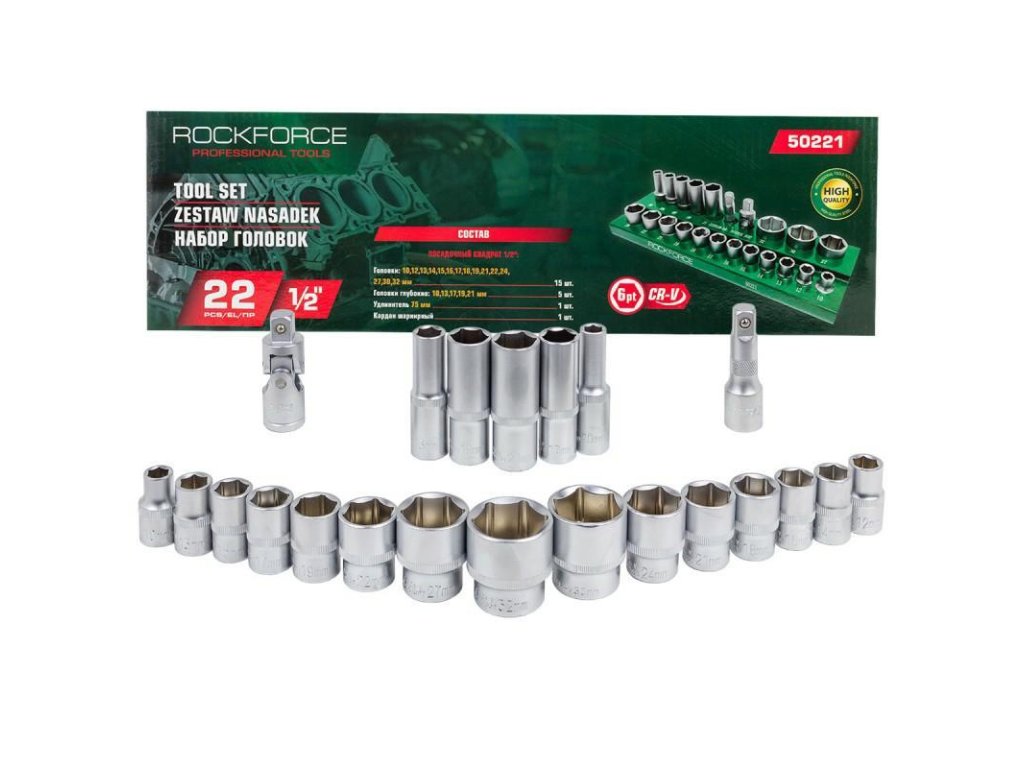 1/2"-os 22 részes (6-szögletű) fejkulcs szett