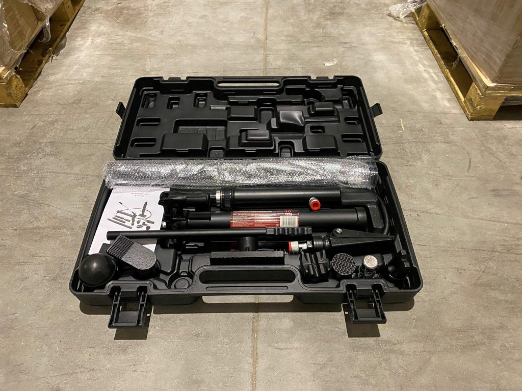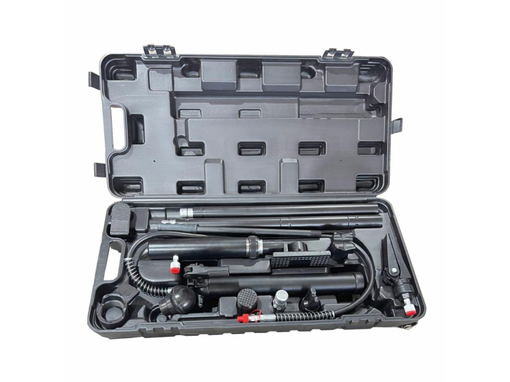 A készlet hidraulikus pumpát, hengereket, hosszabbítókat és ívelt adaptereket tartalmaz. Továbbá kiegészíthető visszafelé működő hidraulikus hengerrel és rögzítő adapterekkel.
