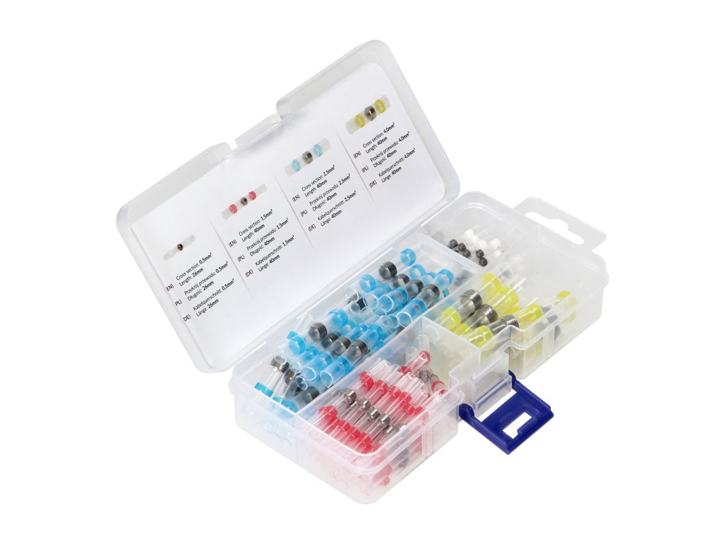 - Sokoldalúság: Az ónos zsugorcső-készlet sokféle alkalmazáshoz alkalmas. Ideális profi szakemberek és barkácsolók számára, akik megbízható megoldást keresnek villamos csatlakozásokhoz.