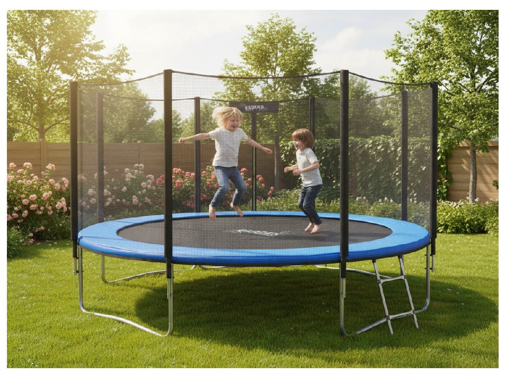 TRAMPOLÍNA 3,74 M LÉTRÁVAL ÉS VÉDŐHÁLÓVAL