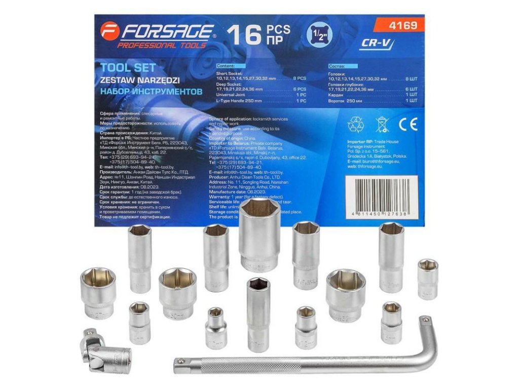 15 darabos szerszámkészlet, 10-36 mm dugókulccsal, CR-V mechanizmussal