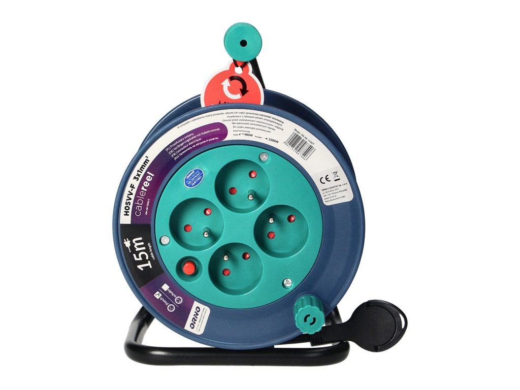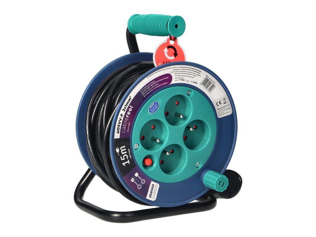 15 m hosszabbító kábel dobon, 4 aljzat, türkiz