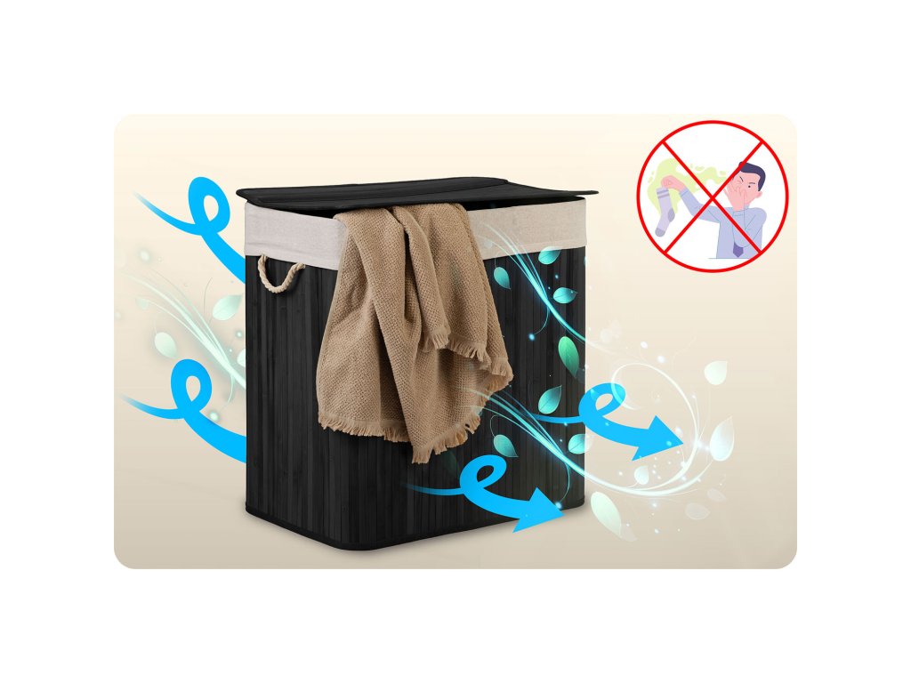 A pamut és bambusz természetes rostjai aktívan felszívják a nedvességet és semlegesítik a kellemetlen szagokat, anélkül hogy bent tartanák a kosárban.