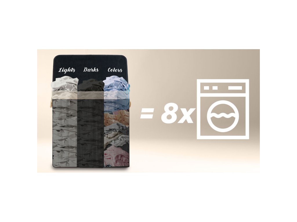 A természetes pamut betét praktikus mosózsákká alakítja a kosarat. Töltés után egyszerűen emelje ki, kösse össze és vigye a mosógépbe – időt takarít meg, elkerüli a rendetlenséget és fenntartja a tisztaságot.