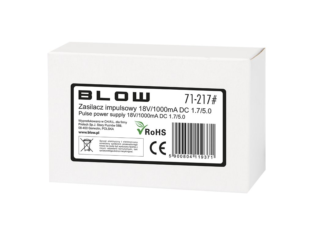 18 V 1000 mA impulzusüzemű tápegység otthoni használatra. Ideális minden olyan elektronikus eszközhöz, amely 18 V-os, legfeljebb 1 A terhelést és megfelelő csatlakozóaljzatot igényel.