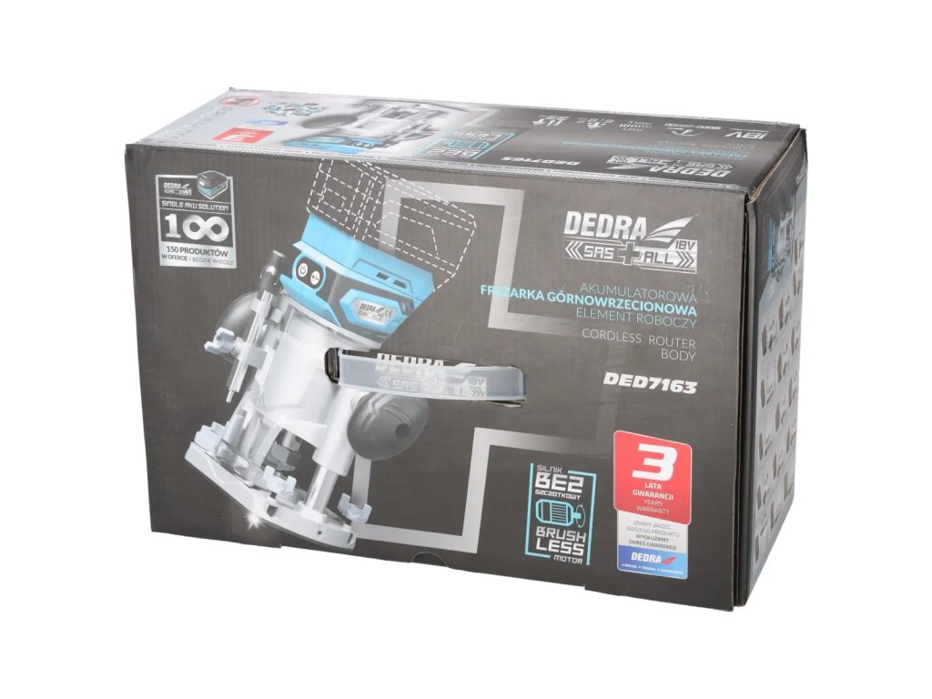 A DEDRA SAS+ALL DED7163 kefés, vezeték nélküli marógép fa- és faalapú elemek megmunkálására készült.