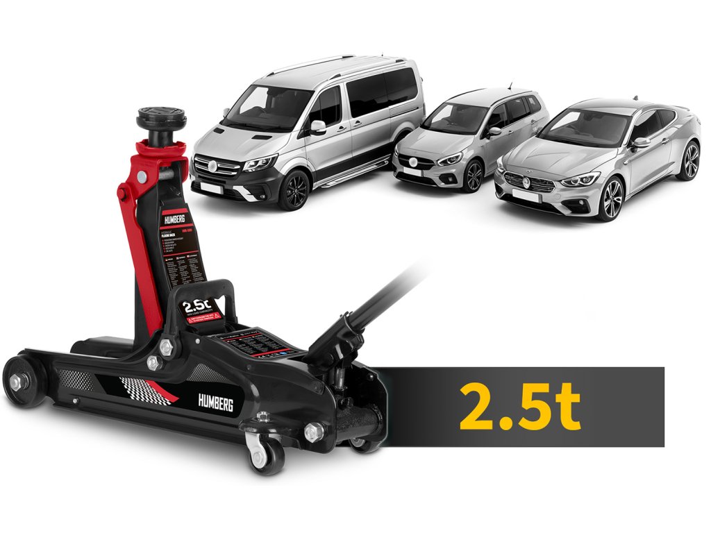 Terhelhetőség 2,5 tonnáig — emelő ideális személyautókhoz, alacsony járművekhez, multivanokhoz és kis furgonokhoz (2,5 t-ig).