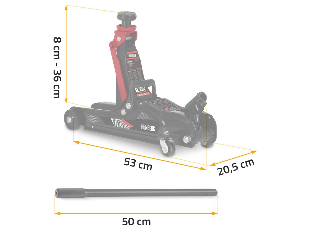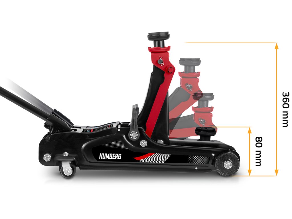 Emelési magasság 80 - 360 mm — alacsony autókat is emel!