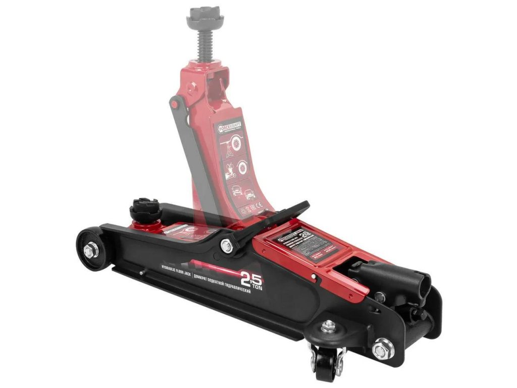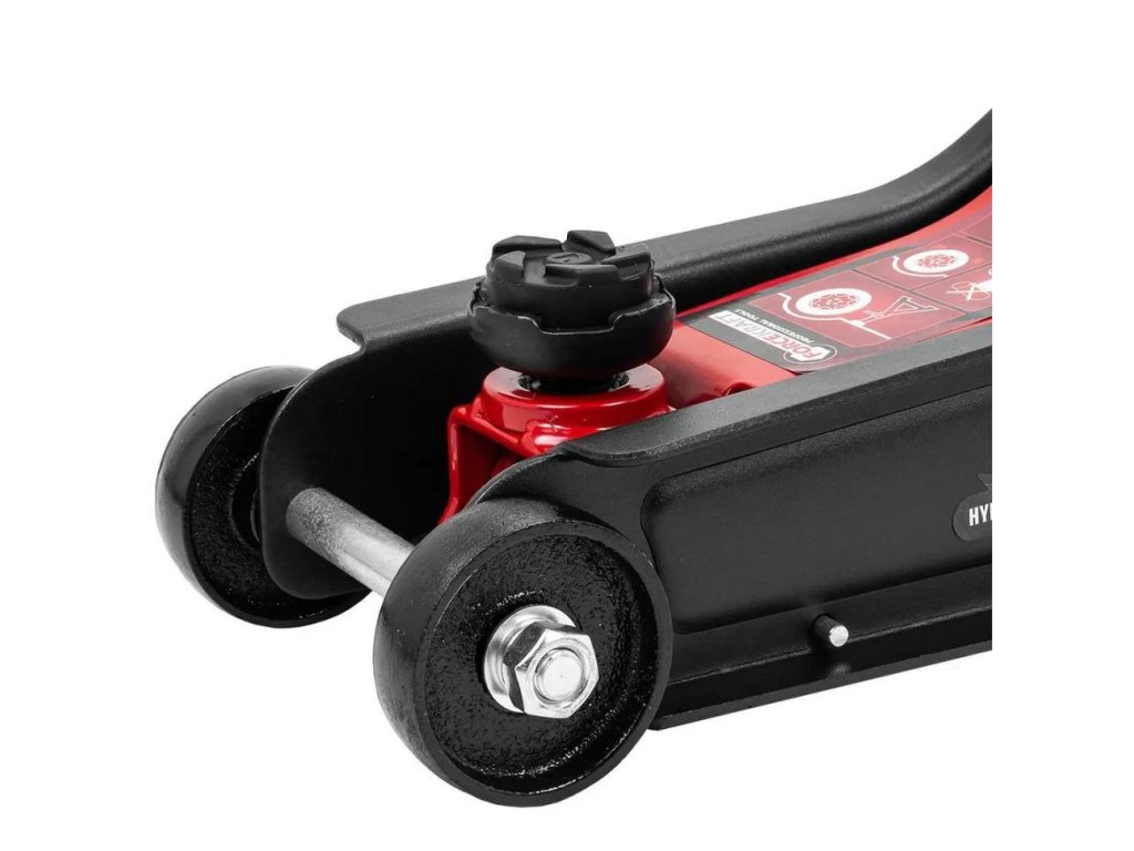 Az emelő tartós, fém kerekekkel van felszerelve, amelyek nem hajlanak meg az autó súlya alatt, még a hosszú szervizidőszak alatt sem.