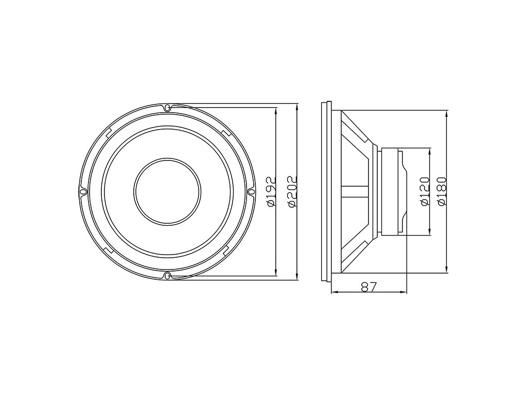 20 cm-es 8" 300W 8 Ohm A-200 mélysugárzó
