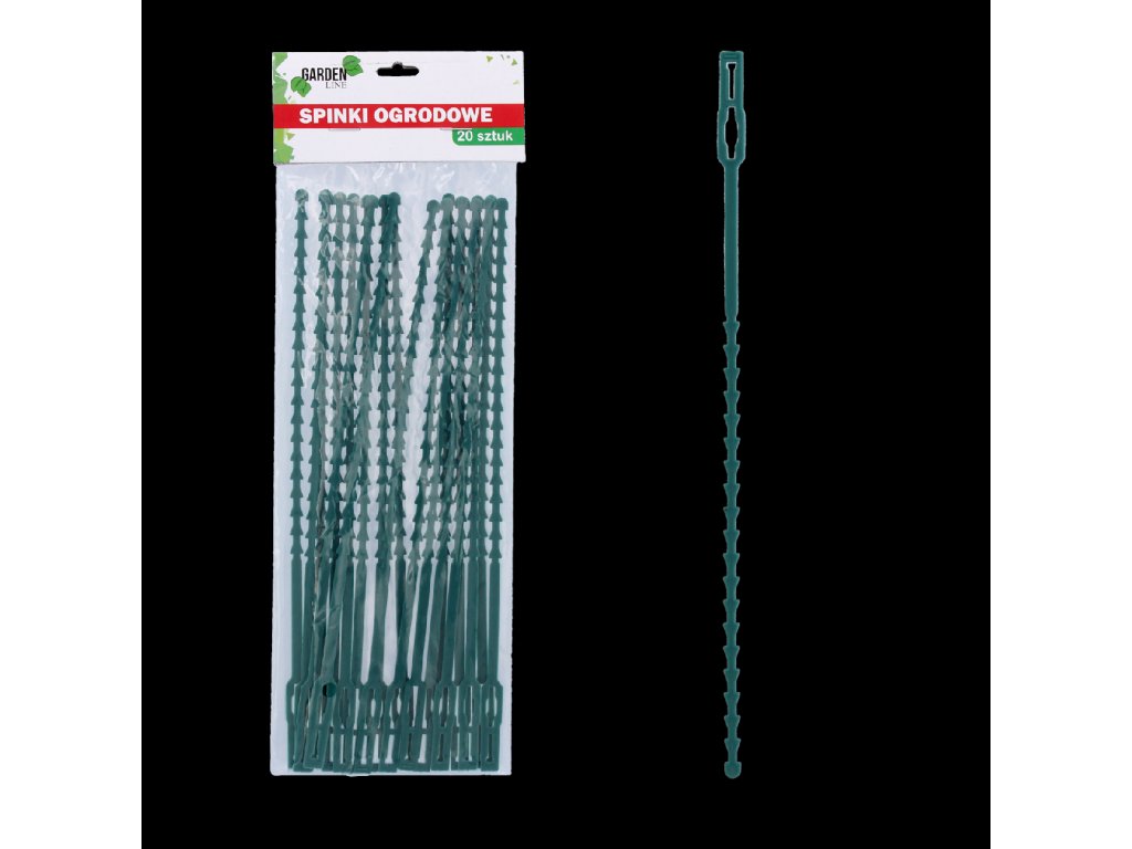 Növényrögzítő klipszek, rúdakhoz vagy kertészeti szerkezetekhez. Ezek a rugalmas, állítható szalagok elég finomak ahhoz, hogy ne sértsék a növényt, ugyanakkor biztosítják a megfelelő rögzítést a rúdon. A kötelet rugalmas zöld műanyagból készítették, ami illeszkedik a növényekhez. A csomagban 22 cm hosszú zöld klipszek találhatók.Kiegészítő paraméterek