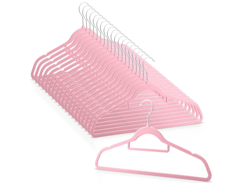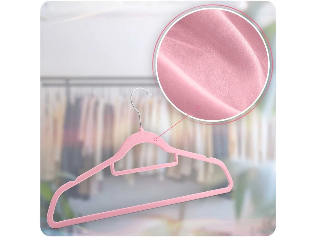 - Bársony bevonat: A bársony csúszásgátló funkcióval rendelkezik, amely megakadályozza, hogy a ruhák lecsússzanak a fogasról. Ezenkívül esztétikus megjelenést ad, és luxusabbá teszi a fogast az érintésre.