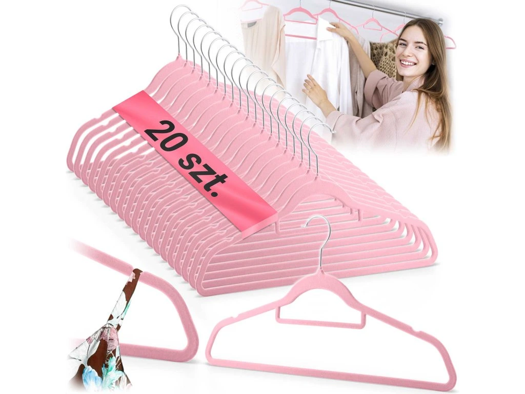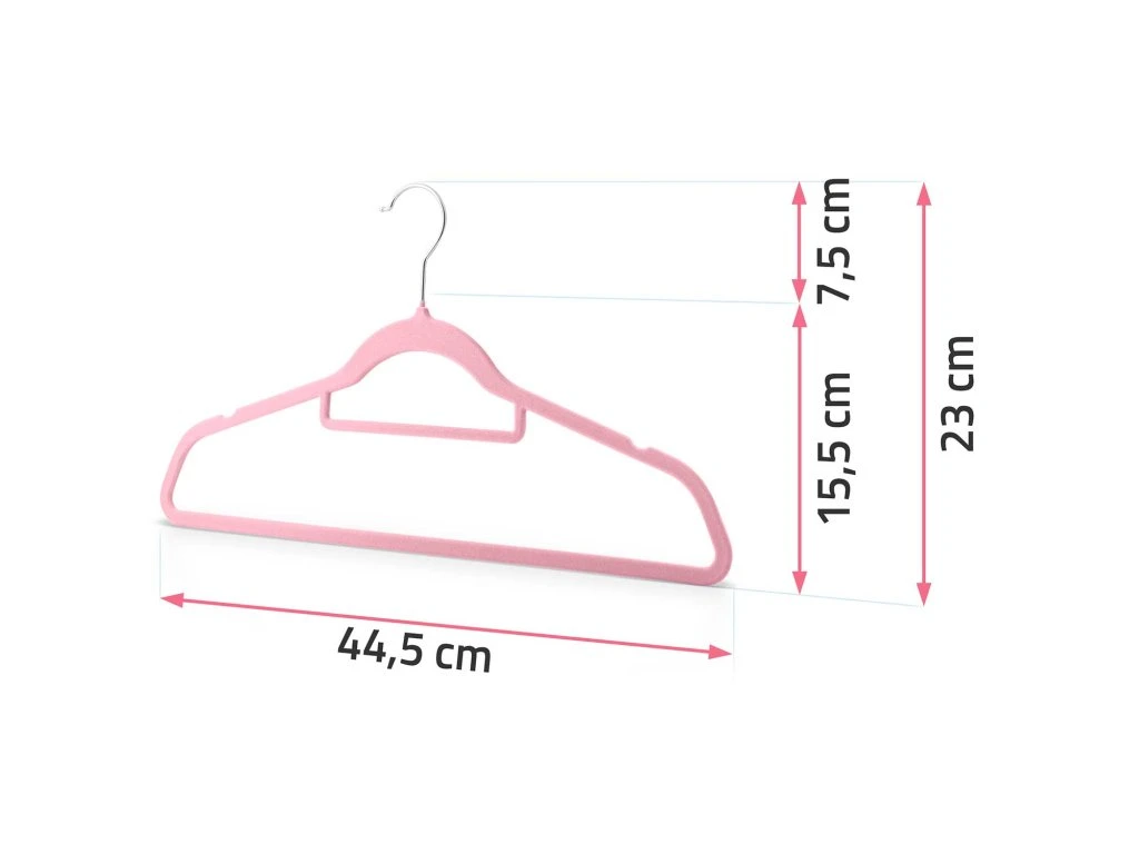 Kiváló minőségű PP mag - kiváló minőségű velúrral bevont, megakadályozza a ruhák lecsúszását a fogasról. Nem deformálja a ruhákat, szilárd és tartós.