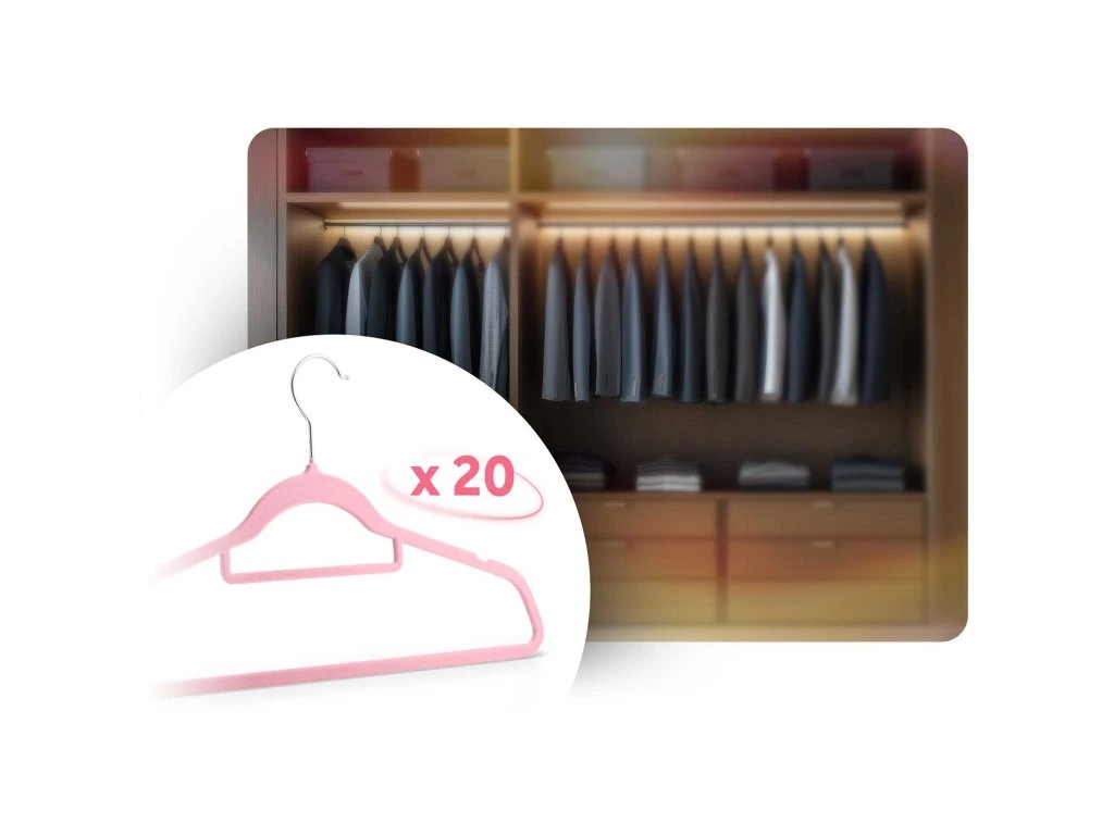 A 20 darabos készlet garantálja, hogy minden darab a gardróbjában megtalálja a helyét, és könnyedén és stílusosan rendezheti el!