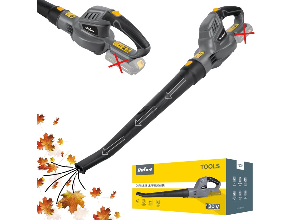 Akkumulátoros légfúvó Rebel Tools tökéletes eszköz, amely jól fog jönni háza őszi takarításakor. A 245 km/h szélsebességnek köszönhetően könnyedén és gyorsan eltávolíthatja a leveleket, homokszemeket és fűszálakat a kertben. A készülék kényelmes kezelhetőségét garantálja a 2 kg-ot nem meghaladó súly, valamint az ergonomikus kialakítás, amely nem terheli meg a kezet munka közben.