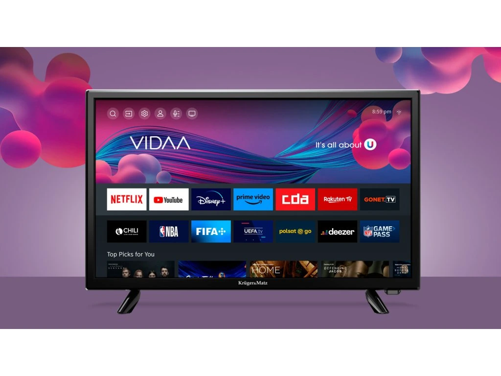 A Kruger & Matz KM0224HD-V2 televízió a VIDAA rendszernek köszönhetően hozzáférést biztosít a legjobb zenei, filmes és sporttartalmakhoz, beleértve a népszerű platformokat, mint például: Netflix, YouTube, Disney Plus vagy Amazon Prime Video. Élvezze kedvenc filmjeit és sorozatait kiváló minőségben, bármikor, amikor csak szeretné.