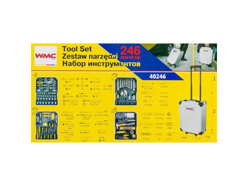 246 darabos szerszámkészlet 1/4" és 1/2"