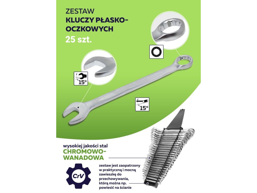 A lapos-végű kulcsok kiváló minőségű króm-vanádium CrV acélból készülnek.