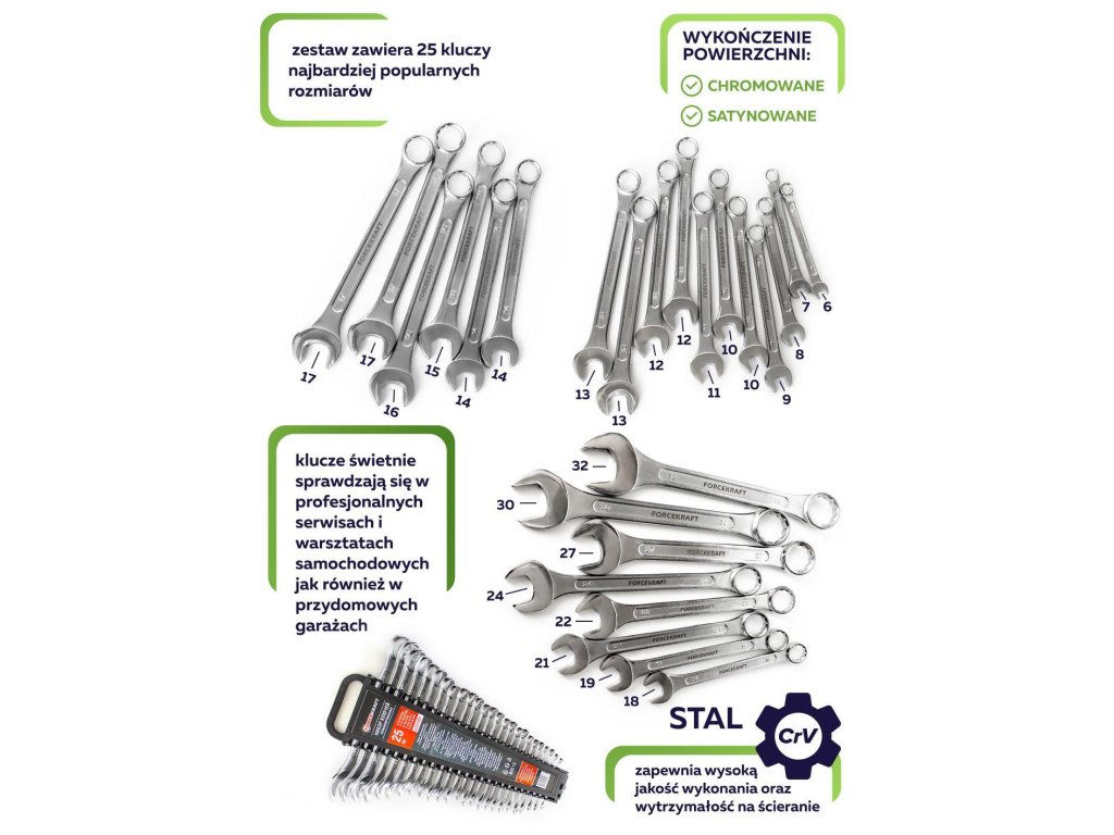 A készlet25 legnépszerűbb méretű kulcsot tartalmaz.