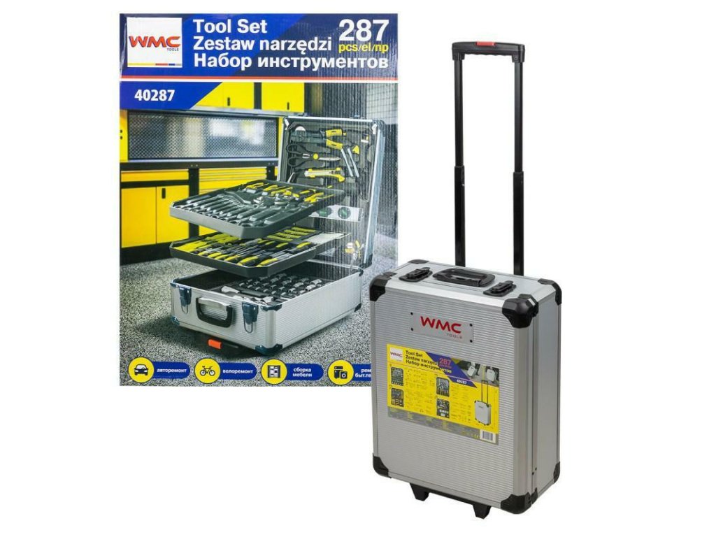 Szerszámkészlet, bitfejek, dugókulcsok, szerszámtáska 287 db