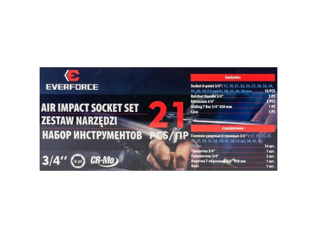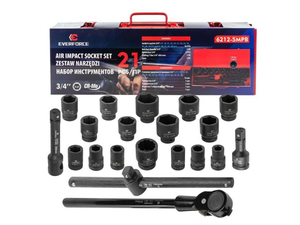 Sokszögű ütőkulcs készlet 3/4'' 21 db 6-szögletű 17-50mm táskával