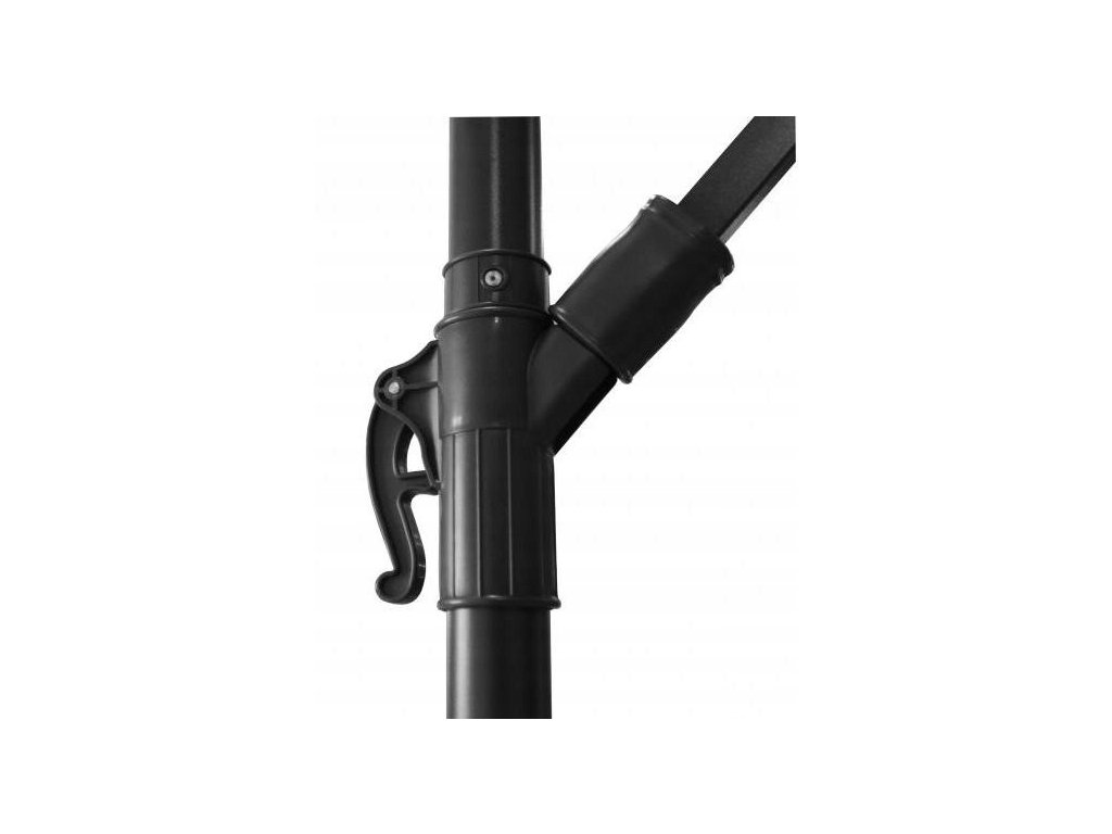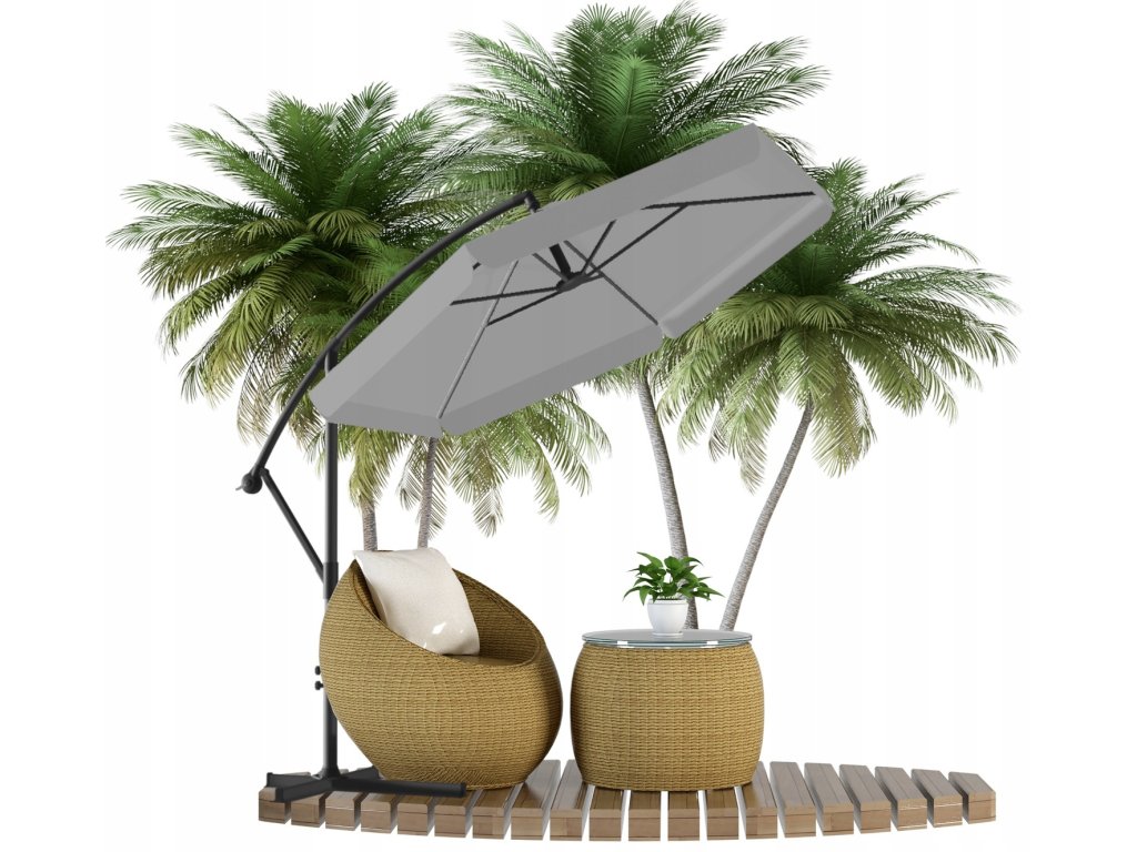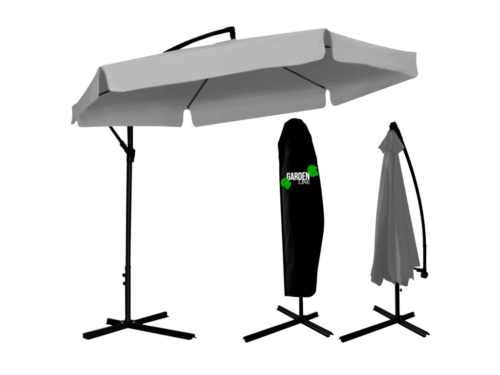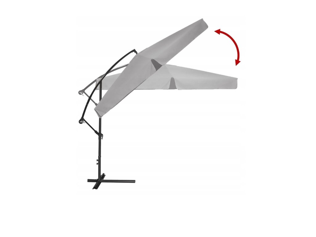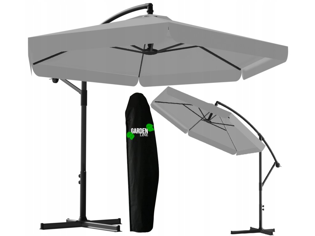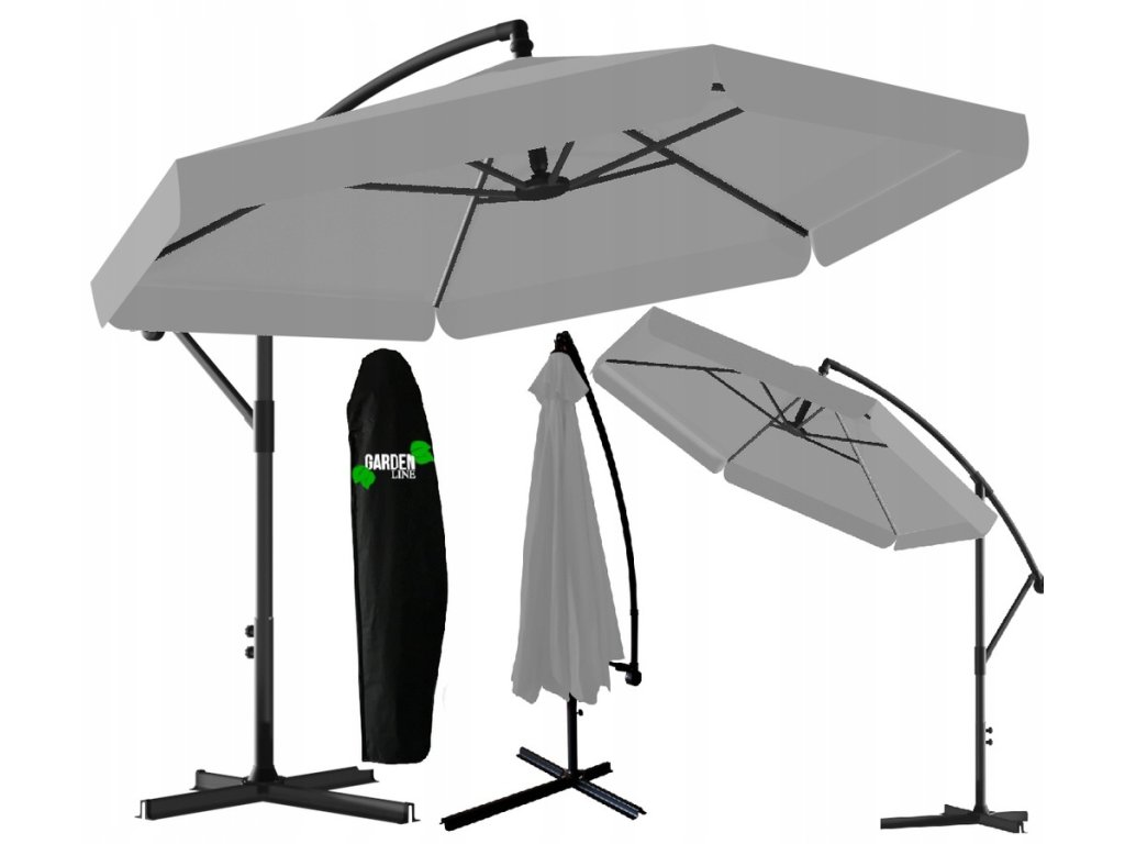 A napernyő kiváló minőségű anyagból készült. A tető vízálló anyagból készült. Termékünk egy erős, porfestett acélkerettel van ellátva. A tetőn egy speciális szellőzőnyílás található. Ezen kívül a napernyő tartalmaz egy vízálló borítót, amely poliészterből készült, fekete színben.