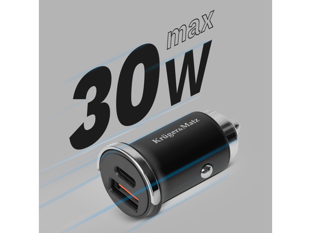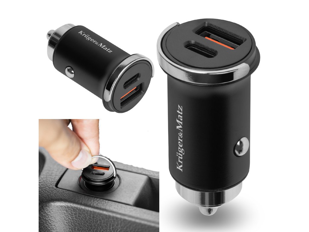 A Kruger&Matz KM0871 autós töltő olyan tartozék, amelynek minden autóban jelen kell lennie. Ez az elegáns töltő USB A és USB C típusú csatlakozókkal, maximális 30 W teljesítménnyel minden vezető számára elengedhetetlen tartozék, aki értékeli mobil eszközei megbízható és gyors töltését.