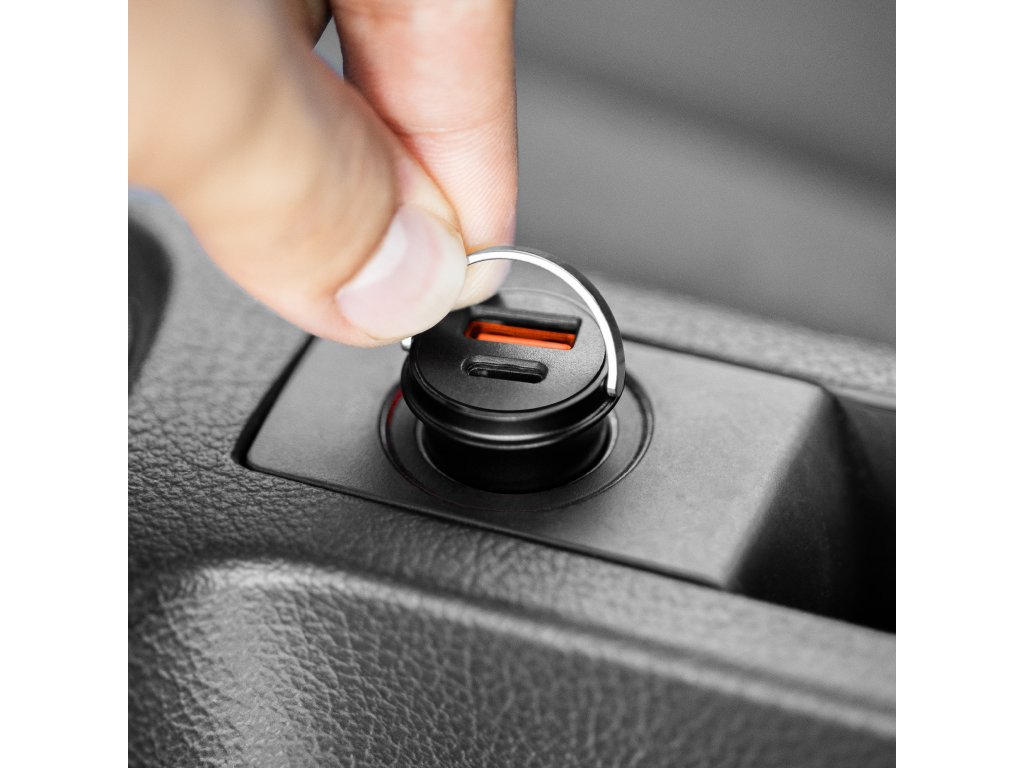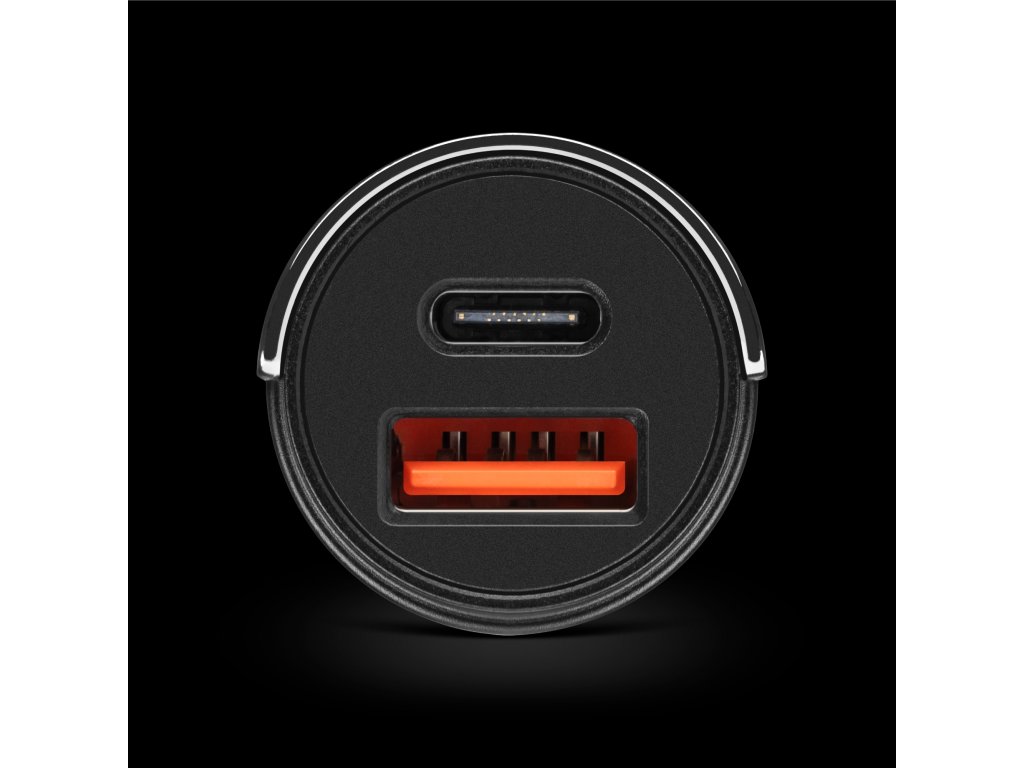 USB A és USB C típusú portokkal felszerelve a töltő lehetővé teszi két eszköz egyidejű töltését, ami ideális megoldás az útközben különböző típusú eszközöket használók számára. Töltse okostelefonját, táblagépét, GPS navigációját és más mobil eszközeit, így megspórolhatja értékes idejét.