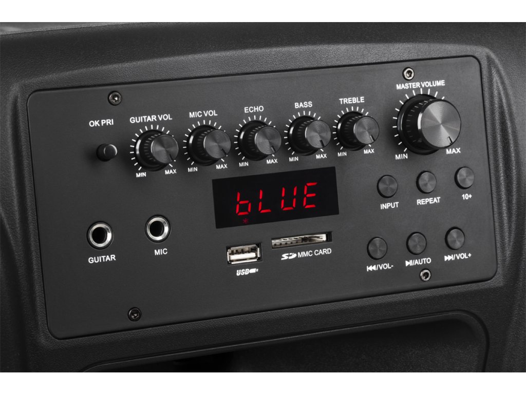 Teljesítmény: 40 W Impedancia: 4 Ohm Bemeneti hatékonyság: 93 ± 3 dB Frekvenciatartomány: 50 Hz ~ 20 kHz Zaj/zaj viszony: >= 71 dB Harmonikus torzítás: <= 0,7% (1 W) Hangszóró: 1" + 12" Bluetooth: