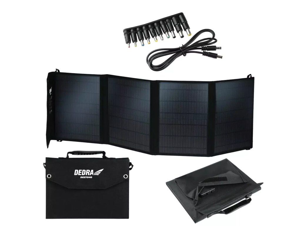 A DEZT0040 hordozható napelemes panel egy 500 W teljesítményig elektromos állomások töltésére, valamint egyéb eszközök, például táblagépek és okostelefonok töltésére készült termék.