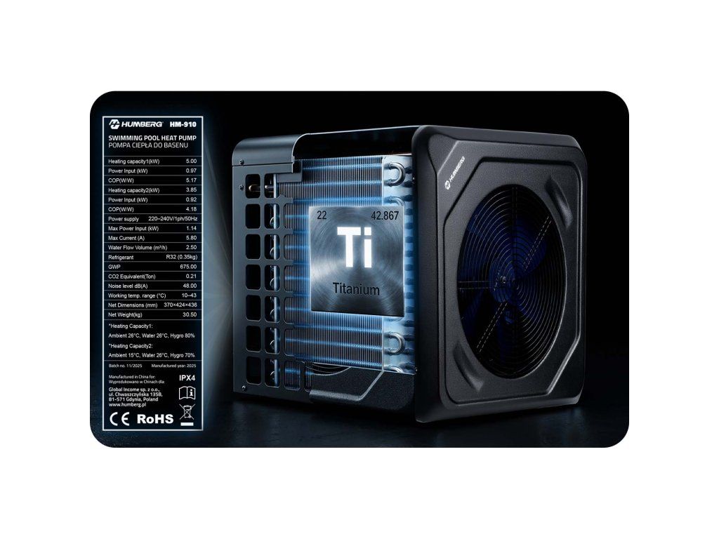 5 kW-os medence- és jakuzzivíz melegítő hőszivattyú Humberg HM-910