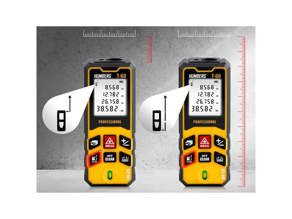 A HUMBERG T-60 távolságmérő két távolságmérési opciót kínál: