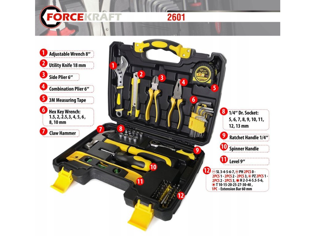 A szerszámkészletet a házi barkácsolók és a profi "aranykezű" emberek igényei szerint dolgozták ki. A benne található szerszámok gyors és hatékony munkát tesznek lehetővé otthon és a műhelyben egyaránt. Funkcionális szerszámkészlet, amely a legszükségesebb szerszámokat tartalmazza, elengedhetetlen minden otthonban vagy műhelyben.
