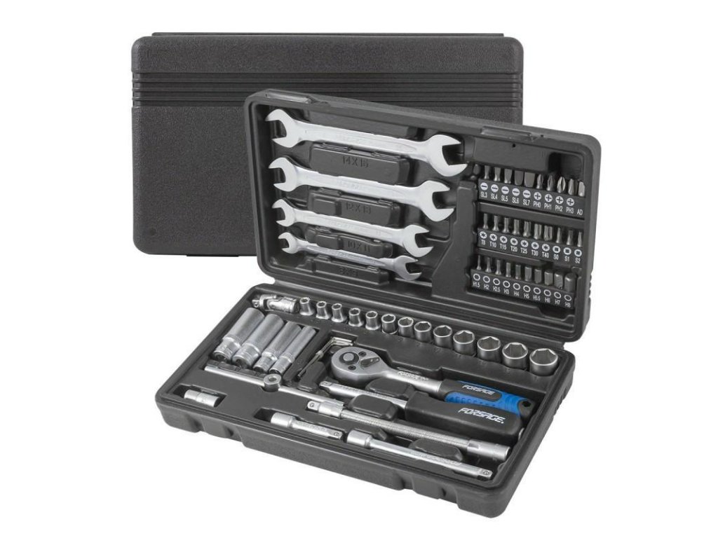 62 darabos szerszámkészlet bitekkel és kulcsokkal, táskával
