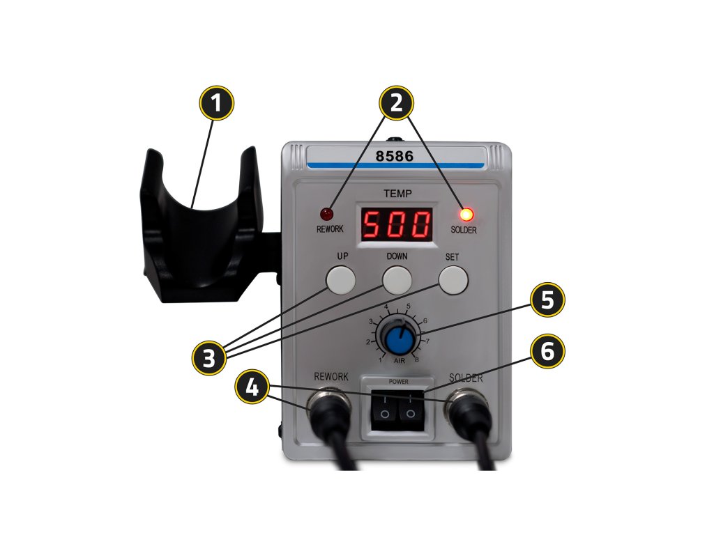Az állomásnak két üzemmódja van: forrasztó és meleg levegő fújás (hot air).