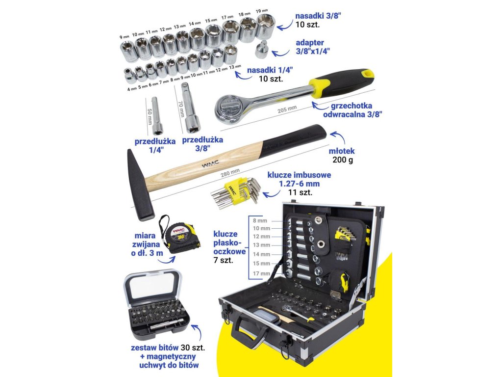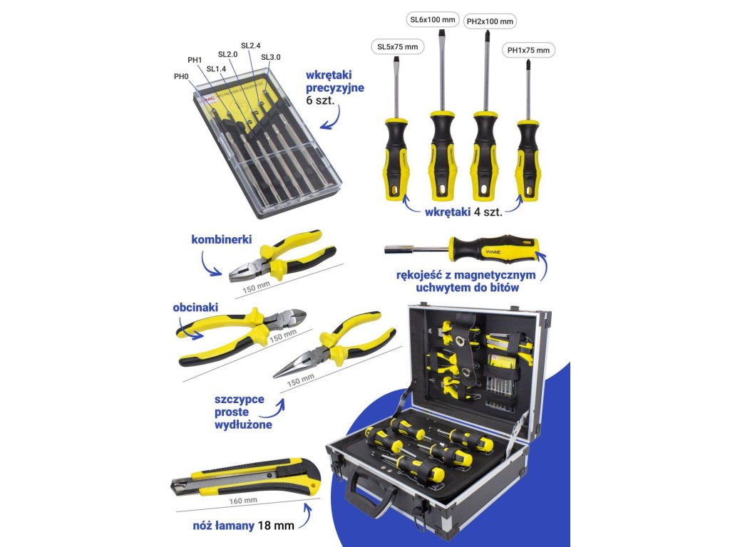 A szerszámkészletet a házi barkácsolók és a professzionális "aranykezű" szakemberek igényeire fejlesztették ki. Az abban található szerszámok gyors és hatékony munkát tesznek lehetővé otthon és a műhelyben is.