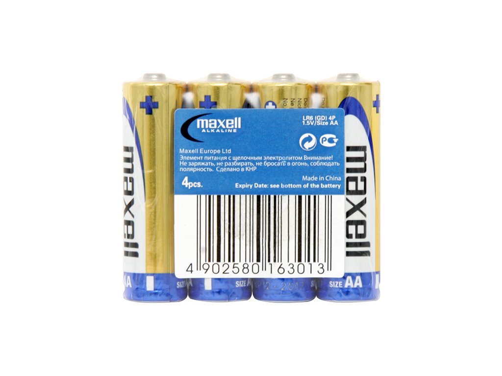 4 db kiváló minőségű AA alkáli elemet tartalmazó csomag a Maxell cégtől.
