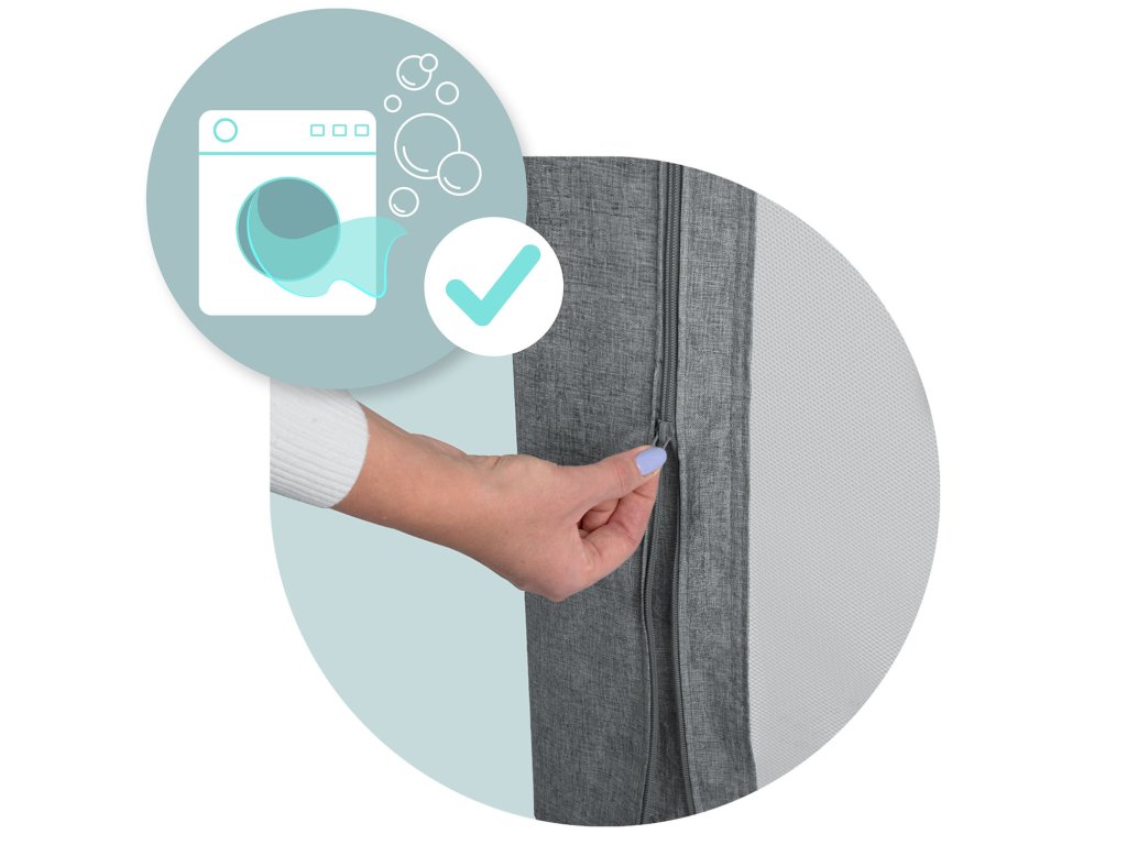 A korlát tartós és légáteresztő hálóval van felszerelve, amely lehetővé teszi a sleeping gyermek megfigyelését.