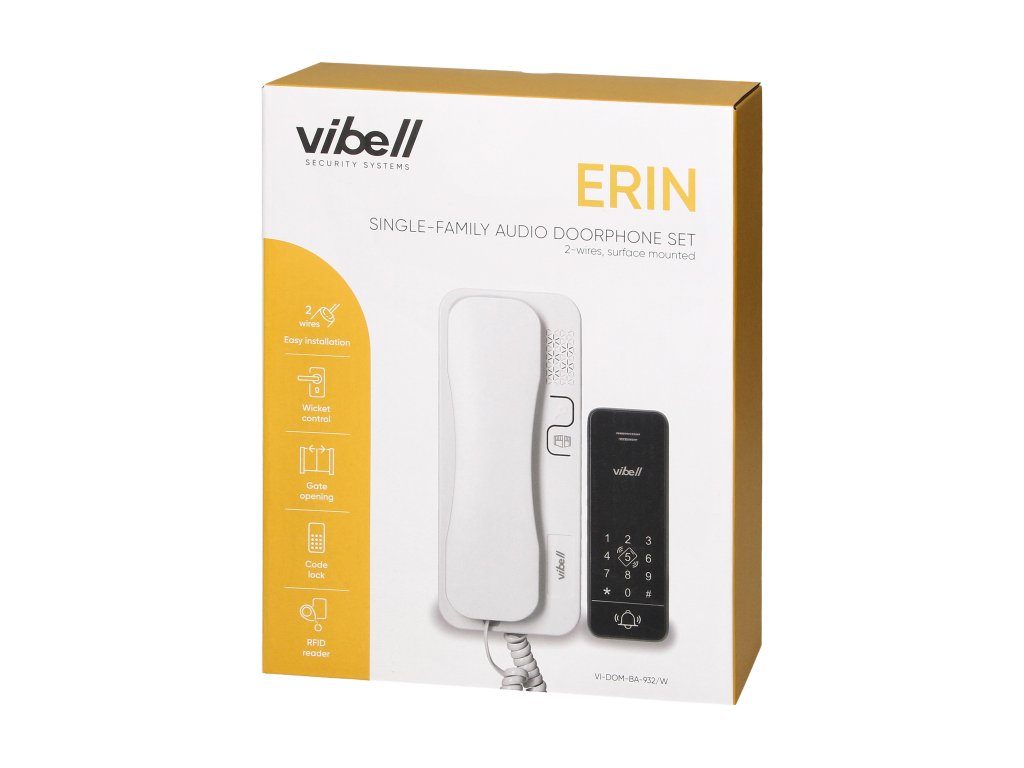 Az ERIN audiokészlet ideális megoldás a családi házak számára. Ha magas szintű biztonságra és kényelmes beléptetés-szabályozásra van szüksége ingatlanához, akkor az ERIN ideális választás lesz.A kültéri egység és még az elektromos ajtónyitó is az uniphone-ról kapja a tápellátást, így nincs szükség további tápegységre, és így nem kell kábeleket vezetni a kertben. A készlet egyszerű és gyors telepítése a kapuhoz vagy ajtóhoz vezető vezetékek csökkentett számának köszönhetően lehetséges - a telepítéshez mindössze két vezetékre van szükség, így a csengő vezetékeket is használhatja erre a célra.Az Uniphone lehetővé teszi a kapu, a kapu és akár az elektromos ajtónyitó távvezérlését is: a PIN-kóddal ellátott billentyűzet egyszerű belépést tesz lehetővé, míg a 13,56 MHz-es kártyákat és kulcstartókat támogató RFID-közelségi rendszer megkönnyíti a kaputelefon használatát, és lehetővé teszi a független vezérlést. kapu és a biztonságos beléptetés vezérlését a háztartások vagy a jogosult felhasználók számára. Ezenkívül azelektromos ajtónyitó közvetlenül a kültéri egységről táplálható .A készülék memóriája akár 200 kulcscímke kódolását is lehetővé teszi.