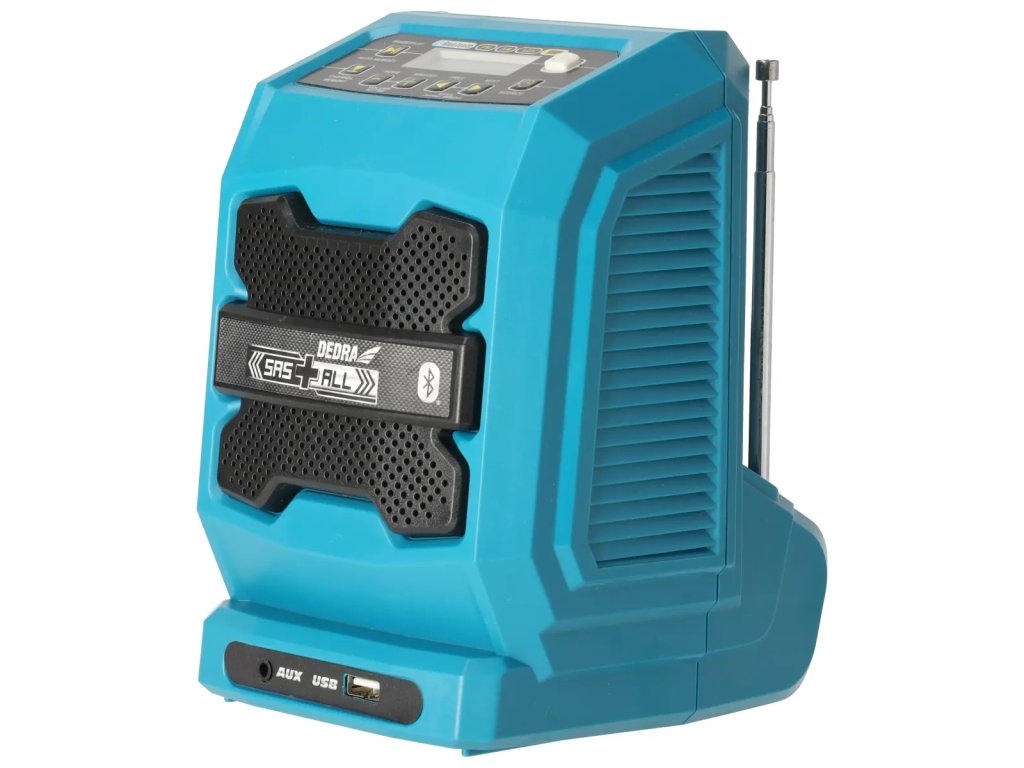 Ez a termék mindazoknak készült, akik SAS+ALL rendszerhez tartozó elektromos szerszámokat használnak, és azoknak, akik most kezdik el a szerszámkészletük összeállítását. A közös akkumulátoros táplálásnak köszönhetően a rádió nemcsak a kedvenc zenéd kellemesebbé tételére alkalmas. Szükség esetén az újratölthető akkumulátort szerszámok táplálására is használhatja, miközben a supergyors DED7039 töltő töltést biztosít az akkumulátor számára. A rádió a legújabb Bluetooth 4.2 adatátviteli technológiával van felszerelve. Ez azt jelenti, hogy hatékonyabban működik, kevesebb energiát fogyaszt, és nagyobb hatótávolsága van a forrástól, mint a telefon (10 m).