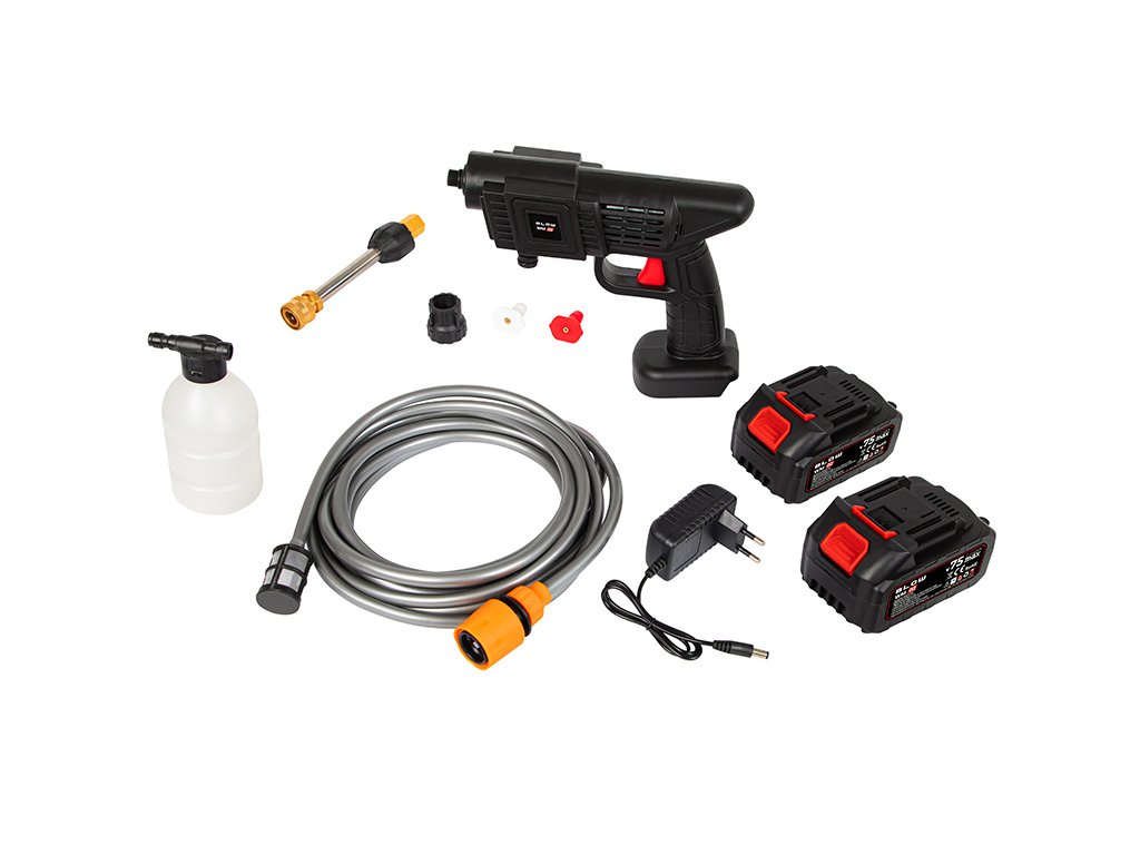 A vezeték nélküli magasnyomású mosó 21V egy modern, hordozható eszköz, amely lehetővé teszi a hatékony tisztítást elektromos áram és vízhálózat csatlakozás nélkül. A 260W teljesítményű erős motor és a legfeljebb 26 Bar nyomás lehetővé teszi az autók, homlokzatok, kerti bútorok vagy kerékpárok mosását.