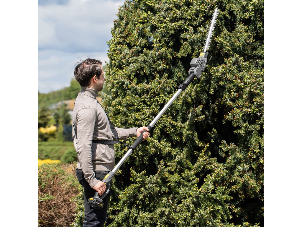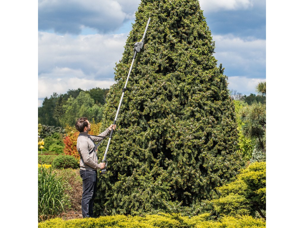 A 214 és 274 cm közötti állítható tartományú teleszkópos tartó lehetővé teszi akár a legmagasabb fák vagy bokrok elérését is. Ezáltal biztonságos nyírást tesz lehetővé létra használata nélkül, időt takarít meg és növeli a munka kényelmét.