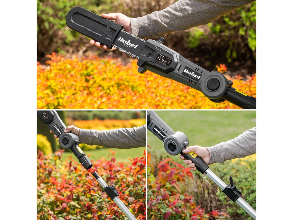 Akkumulátoros teleszkópos olló + fűrész 2 az 1-ben Rebel